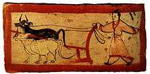 Chinese mythology refers to those myths found in the historical geographic area of China.[2] This includes myths in Chinese and other languages, as transmitted by Han Chinese as well as other ethnic groups (of which fifty-six are officially recognized by the current administration of China) (Yang 2005:4). Various motifs of oxen exist in Chinese mythology. In some cases the focus of the motif is on an ox or oxen as the protagonist of the action, in other cases they appear in a supporting role, sometimes as the locomotive power propelling a cart, wagon, a plow, or providing the rotary power to turn a grindstone or millwheel.