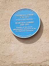 - Thomas Combe (1796–1872), printer, and Martha Combe (1806–1893), patron of the arts, at St Barnabas Church, Oxford (25 February 2007)
