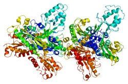 - ↑ Wang Y, Farr CL, Kaguni LS (Jul 1997). "Accessory subunit of mitochondrial DNA polymerase from Drosophila embryos. Cloning, molecular analysis, and association in the native enzyme". J Biol Chem. 272 (21): 13640–6. doi:10.1074/jbc.272.21.13640. PMID 9153213.