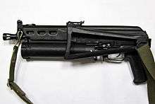The Bizon ("Bison") is a 9mm submachine gun developed in the early 1990s at Izhmash by a team of engineers headed by Victor Kalashnikov (son of the famous engineer Mikhail Kalashnikov, creator of the AK-47 & AK-74).[1][2] Alexei Dragunov, youngest son of Evgeny Dragunov (the creator of the SVD sniper rifle), was also a member of the design team.[2][3]