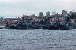 The Pacific Fleet (Russian: Тихоокеанский флот,[1] translit: Tikhookeanskiy flot, named Red Banner Pacific Fleet, Краснознамённый Тихоокеанский флот in Soviet times) is the part of the Russian Navy that is stationed in the Pacific Ocean, which formerly secured the Far Eastern borders of the Soviet Union. The fleet headquarters is located in Vladivostok and a number of fleet bases are located in the Vladivostok area. Another important fleet base in the Russian Far East area is Petropavlovsk-Kamchatsky in Avacha Bay on the Kamchatka Peninsula, with a major submarine base located at Vilyuchinsk in the same bay.