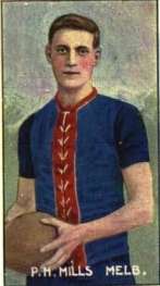 Paddy Mills (17 March 1884 – 12 July 1957) was a former Australian rules footballer who played with Melbourne and Carlton in the Victorian Football League (VFL). [1]