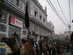 Shia Muslim children in Amroha, India on camels in front of Azakhana as part of the procession commemorating events on & after Day of Ashura