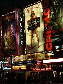 In the late 1980s, a towering hotel was built above the theater, supported by two super-columns located behind the original auditorium structure. Today the theater façade is almost entirely hidden behind a wall of enormous billboards. Only the marquee is visible. The interior was renovated in early 2014 prior to the opening of Holler If Ya Hear Me.[46] In 2015, The Nederlander Organization and Maefield Development announced another $2 billion renovation plan which would include a new lobby and entrance on 47th Street as well as dressing rooms and other patron amenities. The theatre would be raised 29 feet (8.8 m) and the area occupied by the current lobby would be filled by retail space that would extend three additional levels below ground. The New York City Landmarks Preservation Commission approved the plan on November 24; however, many preservationists expressed concern over the idea.[47][48][49]