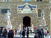 The Palazzo Vecchio (Italian pronunciation: [paˈlattso ˈvɛkkjo] "Old Palace") is the town hall of Florence, Italy. It overlooks the Piazza della Signoria with its copy of Michelangelo's David statue as well as the gallery of statues in the adjacent Loggia dei Lanzi.