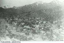 - ↑ Sherman, James E.; Barbara H. Sherman (1969). "Paradise". Ghost Towns of Arizona (First ed.). University of Oklahoma Press. pp. 114–115. ISBN 0-8061-0843-6.