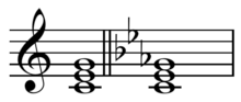 - The tonic, subdominant, and dominant chords, in root position, each followed by its parallel. The parallel is formed by raising the fifth a whole tone.