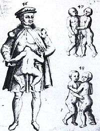 - ↑ Aquino DB, Timmons C, Burns D, Lowichik A (1997). "Craniopagus parasiticus: a case illustrating its relationship to craniopagus conjoined twinning". Pediatric Pathology and Laboratory Medicine. 17 (6): 939–44. doi:10.1080/107710497174381. PMID 9353833.