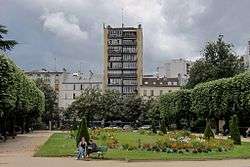 The Parc de Choisy (1937), like the Square Saint-Lambert in the 15th arrondissement (1933), was built on the site of a former gas factory. The designer was Édouard Crevel (1880-1969), who had become chief architiect of the city of Paris in 1935. He was also the architect of the George Eastman Dental Institute (French: Institut dentaire George-Eastman), a dental college, next to the park. After World War II, he became architect of the Ministry of Reconstruction, rebuilding structures destroyed or damaged during the war.[1]