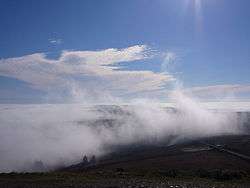 Although the highest hill, Tuchen Gador, is only 384 meters high, it is easy to get lost. Low fog is frequent between the hills and above the swamps. The Monts are very irregular. The sharp rocks of Tuchen Gador create a striking contrast to the rounded hills of the Mont Saint Michel de Brasparts.[2] Hiking on the Monts can be treacherous because of the ever-changing weather and the uneven and marshy ground.