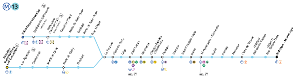 | Paris Métro Line 13 | |||||||||||||||||||||||||||||||||||||||||||||||||||||||||||||||||||||||||||||||||||||||||||||||||||||||||||||||||||||||||||||||||||||||||||||||||||||||||||||||||||||||||||||||||||||||||||||||||||||||||||||||||||||||||||||||||||||||||||||||||||||||||||||||||||||||||||||||||||||||||||||||||