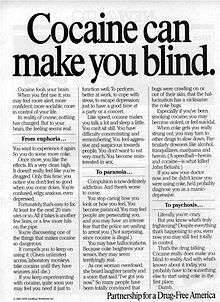 The Partnership for Drug-Free Kids, first known as the Partnership for a Drug-Free America (PDFA)[2] then later as the Partnership at DrugFree.org,[3] is a New York City-based non-profit organization which runs campaigns to prevent teenage drug and alcohol abuse in the United States.[4][5] It is notable for mobilizing volunteer talent "against a single social problem"[6] to help young people "live their lives free of drug and alcohol abuse,"[4] and to assist parents in prevention efforts. The organization gets input from scientists, specialists in communication, researchers and others, and offers resources for parents and teenagers on its website.[7] It focused efforts to "unsell" illegal drugs such as cocaine,[8] heroin,[8] prescription drugs, marijuana, MDMA, and others, as well as discouraging abuse of alcohol and nitrous oxide, by breaking away from a standard public service approach and doing a coordinated media campaign. While the organization has focused drug prevention advertising on broadcast media such as television, there are signs in recent years that it is shifting media support to emerging channels such as video-on-demand, digital technology and particularly the Internet.[9] The organization's marketing experience was written up as a 58-page[1] marketing "case study" for study by students at the Harvard Business School.[10][11] The organization is perhaps best known for its iconic TV ad This Is Your Brain on Drugs, but it had made over 3,000 ads by 2011 while pursuing a flexible strategy.