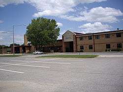 In 1943, German and Italian prisoners of World War II were brought to Kansas and other midwest states as a means of solving the labor shortage caused by American men serving in the war effort. Large prisoner-of-war camps camps were established in Kansas at Camp Concordia, Camp Funston (at Fort Riley), and Camp Phillips (at Salina under Fort Riley). Fort Riley established 12 smaller branch camps, including Peabody and El Dorado.[31][32] Up to 150 prisoners were quartered at the Peabody branch camp.[13] Farmers were to have first priority over other industries in requesting prisoner labor. County agents were responsible for processing the application of local residents seeking the use of the prisoners who were to be available only as group laborers. No fewer than four prisoners could be assigned to any farm, and one guard accompanied each group, but later it was common for no guards to accompany the prisoners. The prisoners were not allowed to operate any powered farm equipment. The farmer collected the workers at the camp and returned them at the end of each day. The Peabody branch camp #101 was located in the Eyestone building, now occupied by Heckendorn Equipment Company, and located at 122 West 2nd Street.[13] The prisoner yard was located in the north-east corner of the property and still exists as a storage area. The camp was closed in December 1945, after Germany surrendered.[13]