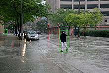 When the conditions permit (fixed camera, stationary lighting conditions, etc.), background subtraction can help to detect pedestrians. Background subtraction classifies the pixels of video streams as either background, where no motion is detected, or foreground, where motion is detected. This procedure highlights the silhouettes (the connected components in the foreground) of every moving element in the scene, including people. An algorithm has been developed,[7][8] at the university of Liège, to analyze the shape of these silhouettes in order to detect the humans. Since the methods that consider the silhouette as a whole and perform a single classification are, in general, highly sensitive to shape defects, a part-based method splitting the silhouettes in a set of smaller regions has been proposed to decrease the influence of defects. To the contrary of other part-based approaches, these regions do not have any anatomical meaning. This algorithm has been extended to the detection of humans in 3D video streams.[9]