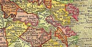From Fulton Yard, after climbing out of the James River Valley, the surveyors generally followed the high ground of the Peninsula between the rivers which border it. As a result, the route selected faced only gentle grades through coastal plains of the Tidewater region of Virginia, dropping only about 30 feet (9.1 m) in elevation, from Richmond (54 feet above sea-level) to Newport News (at 15 feet (4.6 m) above sea-level).[6] The new C&O line ran through several American Civil War battlefield areas in eastern Henrico County and then through Charles City County, New Kent County, James City County, York County and Warwick County. It crossed the Chickahominy River south of Bottoms Bridge and the Warwick River east of Lee Hall.