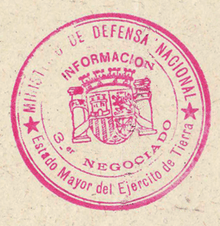 The changes in the structure began on 16 October 1936, doing away with the War Ministry which was replaced by the 'National Defence Ministry' (Ministerio de la Defensa Nacional), led by the president of the republic, Largo Caballero.[17] By means of this new structure, the Regular Popular Army unified all the branches of the military, including the renowned Fifth Regiment, as well as all scattered militias, a process that was gradually implemented with the goal of completion by February 1937.[18] By 30 October all Spanish males aged between 20 and 45 were being conscripted.