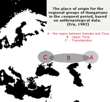 Anthropologically, the type of Magyars of the conquest phase shows similarity to that of the Andronovo people,[75] in particular of the Sarmatian groups around the southern Urals.[76] The Turanid (South-Siberian) and the Uralid types from the Europo-Mongoloids were dominant among the conquering Hungarians.[77]