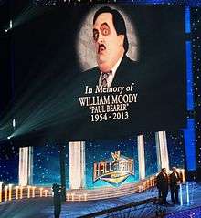 On the March 3, 2014 episode of Raw it was announced that Paul Bearer would be inducted into the WWE Hall of Fame.[24] Kane was the inductor whereas his sons Michael and Daniel Moody had accepted the induction. After the segment, The Undertaker came out in character and paid tribute.[25]