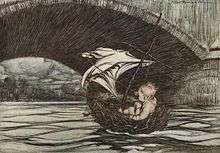 Most of the text of Peter Pan in Kensington Gardens was included as chapters 13–18 of Barrie's earlier novel The Little White Bird, published in 1902, with minor differences appearing on only nine pages of the separately published 1906 novel.[1] The Little White Bird was published as a novel for adult readers; whereas Peter Pan in Kensington Gardens was published specifically as a children's book.[2] Scholar Jacqueline Rose perceives, however, that the book is not so much a children's book as one for art collectors thanks to the 1906 edition's illustrations by Arthur Rackham.[3]