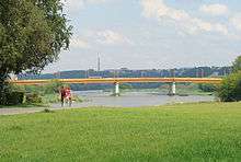 Petras Vileišis Bridge formerly known as Vilijampolė Bridge is a bridge connecting Kaunas Old Town and Vilijampolė, Lithuania. It is the last bridge over the Neris River before its mouth. Its length exceeds 291 metres, width 14 metres. The bridge was completed during the interbellum period in 1929. The Vilijampolė Bridge across the Neris River received special attention from the Lithuanian rebels during the June Uprising in Lithuania in 1941 as they expected the Germans to enter the city using this bridge.[1] When the Lithuanians got to the bridge, it was already wired by Red Army with explosives. 40 Soviet troops and three armoured vehicles protected the bridge and waited for the right moment to detonate.[2] When the Soviets retreated a bit after facing Lithuanian fire, Juozas Savulionis ran to the middle of the bridge, cut the wires, and thus saved it from destruction. On his way back Savulionis was shot and killed by Soviet fire, becoming one of the first victims of the uprising.[2] It was destroyed in 1944 by Wehrmacht as the Soviet forces were approaching. It was rebuilt in 1948 and renovated in 2008. It was named after Petras Vileišis, an engineer from Interbellum Lithuania.