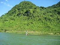 Besides the grotto and cave systems, Phong Nha has the longest underground river. The Sơn and Chay are the main rivers in this national park. Most of caves here have been shaped by Son and Chay Rivers. The Son River flows into the mouth of the Phong Nha cave and keeps on underground, where it is called the Nam Aki River. It emerges 20 km to the south near Pu-Pha-Dam Mountain.[18] There are spectacular streams, springs and waterfalls in Phong Nha-Kẻ Bàng, namely: Gió waterfall, Madame Loan waterfall, Mọc stream erupting from a limestone mount range, and Trạ Ang stream.[19]