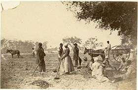 John Reekie (1829-?) was another little known Civil War photographer. Scotsman, Reekie was employed by Alexander Gardner. Reekie was active in Virginia, taking views at Dutch Gap and City Point, and in and around Petersburg, Mechanicsville and Richmond. Reekie's probably best known for his scenes of the unburied dead, on the battlefields of Gaines' Mill and Cold Harbor. One of his most well-known, "A Burial Party, Cold Harbor", was included with six others of his negatives in Gardner's Photographic Sketch Book of the War. It depicts African American soldiers gathering human remains on the Cold Harbor battlefield, almost a year after the battle.[41] This photograph is notable for being one of relatively few images depicting black soldiers' role in the war.[42] John
