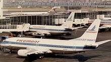 In 1955, the network extended from Cincinnati and Louisville east to the coast from Norfolk to Myrtle Beach. At the end of 1978, still under U.S. route regulation, Piedmont's routes reached north to New York, west to Denver, Colorado, and south to Miami, Florida. Flights to Dallas/Ft. Worth began in 1979 followed by Houston in 1980 and New Orleans in 1982.[9] In 1984, Los Angeles and San Francisco were added to the route system followed by Minneapolis/St. Paul in 1985, Montreal and Ottawa in Canada in 1986 and Seattle in 1987.[10] By 1988, the airline was serving Phoenix and San Diego in addition to a new international destination being Nassau, Bahamas[11] and by 1989 was operating flights to Bermuda as well as nonstop service between Los Angeles and Baltimore, Charlotte, Dayton and Tampa; nonstop service between San Francisco and Charlotte, Dayton and Kansas City; nonstop service between Phoenix and Baltimore and Charlotte; and nonstop service between Seattle and Charlotte[12] Shortly before the merger with USAir in 1989, Piedmont was operating connecting passenger hubs located at Baltimore (BWI), Charlotte (CLT), Dayton (DAY) and Syracuse (SYR).[13] The Syracuse operation was the smallest hub in the route system and was previously a hub operated by Empire Airlines prior to its acquisition by Piedmont.[14]