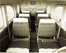 For role flexibility, individual aircraft can be easily converted between various mission types, such as transport, paradrop, aerial photography, surveillance, air medical services and search and rescue duties.[18][19] A maximum of ten passengers, or a 2,200 lb payload, may be carried within the aircraft's main cabin area within the rear section of the fuselage; the standard passenger seats are designed to allow for rapid removal and may be stowed within an optional separate externally-accessed seat stowage compartment behind the main cabin.[19][24] The main cabin area is furnished with soundproofing measures, ventilation, and heating as standard.[21] A maximum of three fuel tanks can also be carried in the main cabin, accordingly reducing payload capacity, to increase the aircraft's flight endurance.[19] In addition to the large sliding doors at either side of the main cabin, separate hinged doors are present on either side of the cockpit; an optional pilot-controlled trapdoor, to accommodate supply drops or surveillance payloads, may also be installed in the center of the cabin floor without any design changes required.[7][18][25] Additional equipment include a firefighting system, aerial application system, underwing tanks, sand filters, propeller de-icing system, mudguard, tailwheel debris guard, oxygen system, and additional power distribution system.[16][19][26]