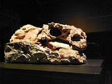 The holotype, AMNH 6523, was found in a layer of the Djadokhta Formation, dating from the Campanian. It consists of a partially crushed skull, lower jaws, the first two neck vertebrae, and dermal bones collected in 1923.[4] The skull is still the largest known of the genus.
