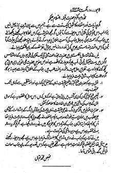 In 1933, Shah was absorbed in his meditation and mystic trances. That year the philosopher Muhammad Iqbal had to give a lecture at Cambridge University on Ibn Arabi's concept of Space and Time. He wrote a letter to the Shah stating that now there was nobody in all of Hindustan whom he could consult in this matter, and requesting him to tell about Ibn Arabi's work. In this letter Iqbal stated with respect that he knew he was disturbing the Shah's meditations, but as his motive was the service of Islam, therefore he dared to ask him a question. The Shah however, due to his meditation and bad health, could not reply.[4]