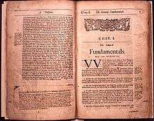 The church was undoubtedly the most important social institution in the colony. The Bible was the primary religious document of the society, and it also served as the primary legal document.[88] Church attendance was not only mandatory, but membership was socially vital. Education was carried out for almost purely religious purposes. The laws of the colony specifically asked parents to provide for the education of their children, "at least to be able duly to read the Scriptures" and to understand "the main Grounds and Principles of Christian Religion".[89] It was expected that the male head of the household would be responsible for the religious well-being of all its members, children and servants alike.[89]