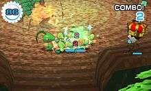 The game uses a form of currency called Poké Diamonds, which can be obtained either through normal gameplay, purchased directly with real money through the Nintendo eShop, or exchanged through StreetPass.[5] A limit on real-world currency use in-game does exist, however, and players are allowed to purchase a maximum of 3,000 Poké Diamonds through this method.[6] After buying 3,000 of these, a mine will appear, granting 20 of them once per day. Poké Diamonds can be used to unlock features such as increasing the chance to find certain Pokémon, in-game travel, continuing to play a stage after a Pokémon's health has run out, or additional Pokémon storage. Challenges, which are missions with a specific set of goals, may also grant Poké Diamonds, in addition to cosmetic items such as clothing.
