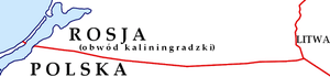 The Poland–Russia border is that between Poland and the Kaliningrad oblast of Russia, which is an exclave, unconnected to the rest of Russia. The border is 232 km long.[9] For most of this length, the Polish side is in the Warmian-Masurian Voivodeship; the extreme east is in the Podlaskie Voivodeship, and the westernmost segment (on the Vistula Spit) in the Pomeranian Voivodeship.[9] 210 km of the border is land and 22 km is sea.[9]