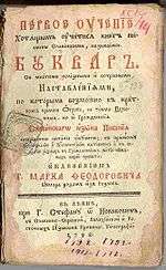 Bulgarian ethnos in Macedonia existed long before the earliest articulations of the idea that Macedonian Slavs might form a separate ethnic group from the Bulgarians in Danubian Bulgaria and Thrace. Throughout the period of Ottoman rule, the Slav-speaking people of the geographic regions of Moesia, Thrace and Macedonia referred to their language as Bulgarian and called themselves Bulgarians.[1][2] For instance, the Serbian researcher St. Verković who was a long term teacher in Macedonia, sent by the Serbian government with special assimilatory mission wrote in the preface of his collection of Bulgarian folk songs: "I named these songs Bulgarian, and not Slavic because today when you ask any Macedonian Slav: Who are you? he immediately answers: I am Bulgarian and call my language Bulgarian...."[3] The name "Bulgarian" for various Macedonian dialects can be seen from early vernacular texts such as the four-language dictionary of Daniil of Moschopole, the early works of Kiril Pejchinovich and Ioakim Kurchovski and some vernacular gospels written in the Greek alphabet. These written works influenced by or completely written in the Bulgarian vernacular were registered in Macedonia in the 18th and beginning of the 19th century and their authors referred to their language as Bulgarian.[4] The first samples of Bulgarian speech and the first grammar of modern Bulgarian language were written by the leading Serbian literator Vuk Karadjić on the basis of the Macedonian Razlog dialect.[5] In those early years the re-emerging Bulgarian written language was still heavily influenced by Church Slavonic forms so dialectical differences were not very prominent between the Eastern and Western regions. Indeed, in those early years many Bulgarian activists sometimes even communicated in Greek in their writing.
