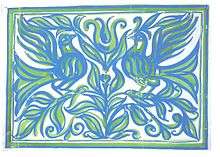 Style: The two artists researched the designs and motifs of ancient pottery, visiting museums throughout Europe, until finally some basic patterns began to emerge as being typical of the influences imposed by past civilisations that had once dominated the Algarve.[5] These designs include the various animals, flowers and foliage that have become associated with Porches Pottery. Swift, having compiled a series of patterns the decorators at the pottery would work from, forbade slavish copying, instead insisting upon free flowing painting within the established style, which is a fundamental characteristic of Porches Pottery decoration