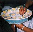Craft: The ceramic technique used to craft Porches Pottery is known as majolica. Majolica is the name given to tin-glazed earthenware which is made by dipping fired earthenware or 'biscuit' into a tin based glaze which provides the brilliant opaque white base onto which the decoration is applied. The technique is thought to have originated in Persia though was definitely well established in Mesopotamia by the 9th century where it became a prized alternative to the much esteemed porcelain that was beginning to appear in China. Introduced into Europe by the Moors, Iberia became famous as a centre of excellence for this type of pottery which due to its popular appeal was soon spread throughout the rest of Europe. At Porches the pottery is hand crafted and each piece is individually painted in a free flowing style. The glazing, painting and firing is all done on site.