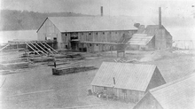 With ample western red cedar and Douglas fir forests surrounding the valley, the forest industry became the dominant economic force. Large logging operators moved in, namely Bloedel, Stewart and Welch. Sawmills were built at Alberni, Great Central Lake, and the McLean Mill. By the Second World War, plywood mills and a nascent pulp industry had started. For the next forty years, the forest industry reigned supreme. Port Alberni Mill opened as a kraft pulp mill in 1946, followed by two paper machines in 1957.[2]