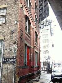 The name comes from a deep water port established along the neighborhood's East River (Long Island Sound) waterfront by Gouverneur Morris Jr., son of Gouverneur Morris, in 1842. He built a two-mile (3 km) railroad from Melrose to his family's holdings on the waterfront, later called the Spuyten Duyvil and Port Morris Railroad, abandoned a hundred years later.[9] The area is dominated by factory and warehouse buildings constructed in the mid-to-late 19th century, convenient to the railroad yards, of which the Oak Point Yard is the main survivor. Notable early businesses were the R. Hoe Co., as well as Cutler & Hammer Tool Works, and Mothers Friend Shirt Waist factory (1888) at Willow Ave. between E. 135th & E. 136th Sts.[10] While many of the early industrial buildings remain, they are little used for manufacturing anymore. The area was the site of the Hell Gate generating plant of Consolidated Edison, where George Metesky, the Mad Bomber who plagued New York City for decades was injured.[11]