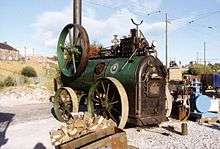 This is usually a fire-tube boiler with a locomotive-type firebox. However, some designs (e.g. the Marshall "Britannia" (pictured)[8]) have circular, marine-type, fireboxes. This latter type were also known by British manufacturers as 'colonial' boilers, as they were mainly intended for export to 'the Colonies', and had a high ground clearance for travelling along rough tracks.[8]