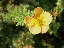 Dasiphora fruticosa (syn. Potentilla fruticosa L., Pentaphylloides fruticosa (L.) O.Schwarz) is a disputed name.[1] It is a species of hardy deciduous flowering shrub in the genus Dasiphora (formerly Potentilla) of the family Rosaceae, native to the cool temperate and subarctic regions of the northern hemisphere, often growing at high altitudes in mountains. Common names include shrubby cinquefoil,[2] golden hardhack,[2] bush cinquefoil,[2] shrubby five-finger,[3] tundra rose, and widdy.[2]