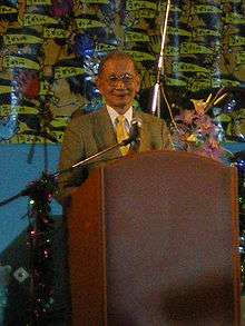 Prasong Soonsiri is a Thai politician, and former Royal Thai Air Force squadron leader, Thai Foreign Minister, and head of the Thai National Security Council. Prasong has been a long-time critic of Thaksin Shinawatra since Thaksin's entry into politics in 1994. Thaksin joined the Palang Dharma Party in late 1994 under the invitation of Chamlong Srimuang, who had just reclaimed the position of party leader from Boonchu Rojanastien. In a subsequent purge of Boonchu-affiliated PDP Cabinet ministers, Thaksin was appointed Foreign Minister, replacing Prasong Soonsiri.[1]