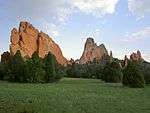 Fountain Formation was formed during the Pennsylvanian period of the Paleozoic era, 290-296 million years ago. Over the next 150 million years, during uplift the mountains would continue to erode and cover themselves in their own sediment. Wind, gravity, rainwater, snow, and ice-melt supplied rivers that ultimately carved through the granite mountains and eventually led to their end.[2]:6 Fountain Formation is Pennsylvanian bedrock unit consisting primarily of conglomerate, sandstone, or arkose, in Colorado and Wyoming, along the east side of the Front Range of the Rocky Mountains, and along the west edge of the Denver Basin. The characteristic predominant red color and the composition of the Fountain reflect that of the granites and gneisses from which it was eroded. Related sitess are: Flatirons, Garden of the Gods, Red Rocks Park, Roxborough State Park
