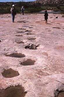 Lyons Sandstone was formed during the Permian period of the Paleozoic era, 250-280 million years ago. At the beginning of the period, sea levels were low and present-day Colorado was part of the super-continent Pangaea. Sand deserts covered most of the area spreading as dunes seen in the rock record, known today as the Lyons Sandstone. These dunes appear to be cross-bedded and show various fossil footprints and leaf imprints in many of the strata making up the section.[2]:8 Related sites include: Garden of the Gods, Roxborough State Park, and the Lyons and neighboring Hall Ranch Open Space areas.