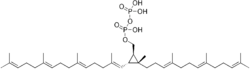[(1R,2R,3R)-2-methyl-3-[(1E,5E,9E)-2,6,10,14-tetramethylpentadeca-1,5,9,13-tetraenyl]-2-[(3E,7E)-4,8,12-trimethyltrideca-3,7,11-trienyl]cyclopropyl]methyl phosphono hydrogen phosphate | |