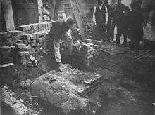 Large numbers of human bones were found during the development of the priory's land for housing in the eighteenth and nineteenth centuries, including some found to the south of Bull Street which may suggest either that a second graveyard existed south of Bull Street, or that the original line of Bull Street may itself have lain further to the south.[7] This has been taken by some historians to indicate that the chapel may have been the original church of Birmingham and preceded the establishment of St Martin in the Bull Ring,[7] though other historians doubt this.[8]