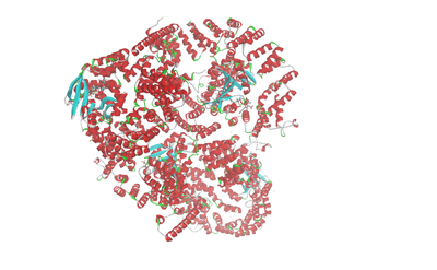 Crystal structure of the NatA complex (Naa10 and Naa15) from Schizosaccharomyces pombe. The red chains represent the auxiliary subunit Naa15 and the blue chains the catalytic subunit Naa10.[8]