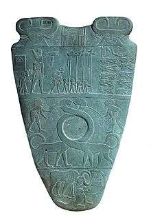 Naqada III is the last phase of the Naqada culture of ancient Egyptian prehistory, dating approximately from 3200 to 3000 BC.[1] It is the period during which the process of state formation, which had begun to take place in Naqada II, became highly visible, with named kings heading powerful polities. Naqada III is often referred to as Dynasty 0 or the Protodynastic Period[1] to reflect the presence of kings at the head of influential states, although, in fact, the kings involved would not have been a part of a dynasty. They would more probably have been completely unrelated and very possibly in competition with each other. In this period, those kings' names were inscribed in the form of serekhs on a variety of surfaces including pottery and tombs.
