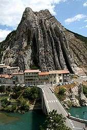 The Verdon River is a tributary of the Durance, rising at an altitude of 2,400 metres in the southwestern Alps near Barcelonette, and flowing southwest for 175 kilometres through the Alpes-de-Haute-Provence and Var (départements) before it reaches the Durance at near Vinon-sur-Verdon, south of Manosque. The Verdon is best known for its canyon, the Verdon Gorge. This limestone canyon, also called the 'Grand Canyon of Verdon', 20 kilometres in length and more than 300 metres deep, is a popular climbing and sight-seeing area.