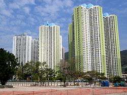 Fortune Estate (Chinese: 幸福邨) is located opposite to Un Chau Estate and near Cheung Sha Wan Station. Formerly the site of Fortune Street Temporary Housing Area,[3][4] the estate consists of three residential buildings built in 2001 to settle the residents affected by the redevelopment of Cheung Sha Wan Estate, Tai Hang Tung Estate and Un Chau Estate.[5][6]