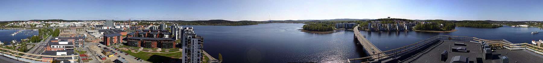 Jyväskylä is located in the Finnish Lakeland. There are 328 lakes in the city, and lakes and rivers constitute 20,1% (295 km2) of the total area of the city. The city's largest lakes are Päijänne, Leppävesi, Tuomiojärvi, Palokkajärvi, Luonetjärvi, and Alvajärvi-Korttajärvi. The city center is located on the shores of a small Jyväsjärvi.[18]